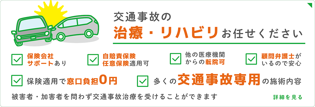詳細を見る事故後の治療・リハビリ交通事故専門施術